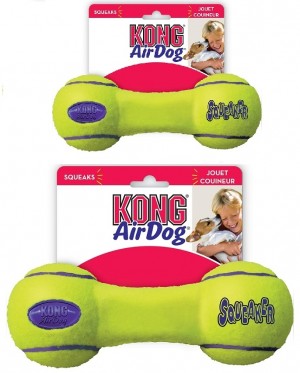 KONG AirDog® Squeaker Dumbbell combines two classic dog toys -the tennis ball and the squeaker - to create the perfect fetch toy. The non-abrasive, high-quality material will not wear down dogs’ teeth. Find your dog’s favorite AirDog® shape and let the games begin