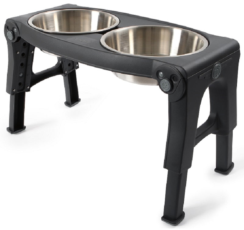 Adjustable legs allow you to increase the height of the feeder as your pet grows. The elevated position of the bowls eliminates stress placed on joints caused by leaning while eating, improves digestion and encourages an ergonomically correct feeding posture. The elevated pet feeder is especially beneficial for older dogs and dogs with arthritis. Uses stainless steel bowls or collapsible bowls.