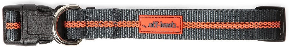 Off-LeashTM collars and leads are made with durable nylon webbing that incorporates a reflective strip down the center for additional safety during early morning or late evening walks. The leash features two handles, allowing you to have better control of your pooch when out and about. Handles are padded for increased comfort on hands and wrists. A D-ring is situated on the underside of the leash, making it perfect for transporting your favorite Off-LeashTM toy.
